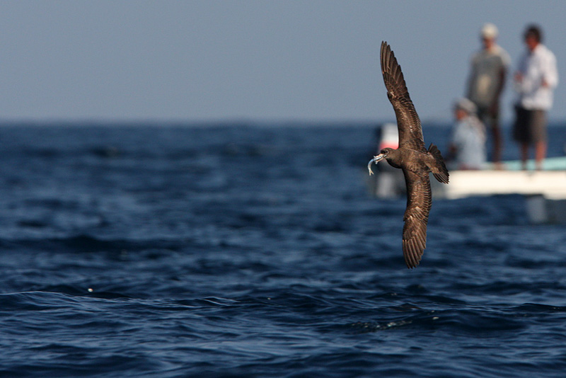 Beskrivelse: Three Pale-footed Shearwaters were feeding frantically around some small fishing boats alongside a handfull of Persian Shearwaters, a Masked Booby and a few Sooty Gulls.
