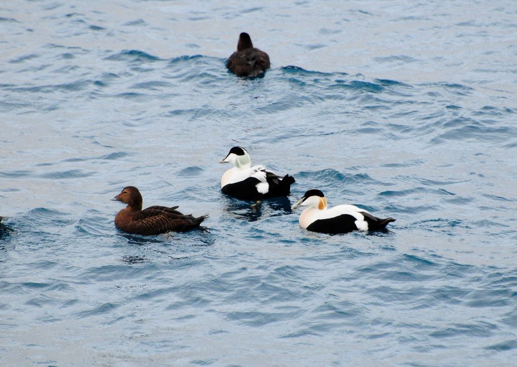 Beskrivelse: Denne Edderfugl han med rustbrun nakke og hals sider er ret atypisk, i en flok på omk. 80 fugle, viste to individer denne besynderlige farve på hovedet, er der andre der har set lignende farve på Ederfugle hanner ?