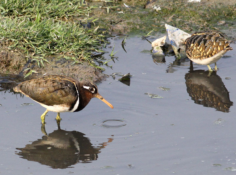 Beskrivelse: En flok på 17 af denne normalt så skulkende vader gående helt frit fremme i en snavset kanal midt i en hektisk og beskidt by - kan det blive mere indisk?