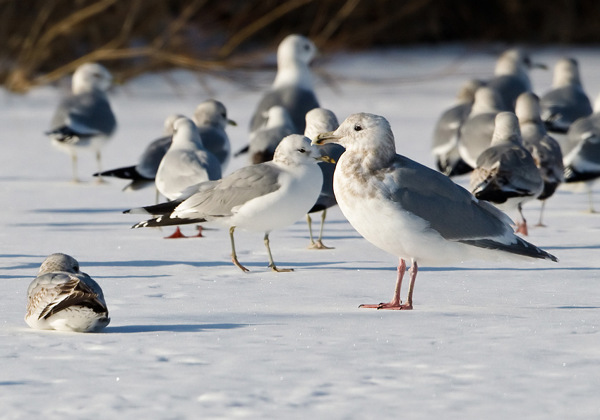De røde ben med de fine sorte negle, næbbet, peberkornsøjet - taler alt sammen om Gråvinget Måge.