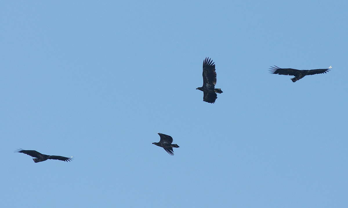 Beskrivelse: Der var 5 havørne i luften på én gang, og jeg bilder mig ind, at det ikke er hver dag man har 4 i søgeren på samme tid....