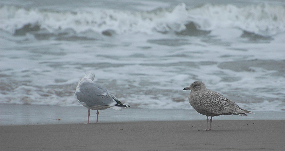 Beskrivelse: Chekkede op på denne spændende måge idag. Efter lang tids obs synes vi (Thomas Varto Nielsen, Peter Hedegaard Kristensen og u.t.) at flere ting haltede i.f.t. Kumlieni. I felt virkede håndsvingfjerene, på den flyvende fugl, ret ensartede gennem hele hånden, hvor det i stedet ville have været bedre hvis de yderste 4-5 havde haft tydeligere mørkere yderfaner ift. resten. Yderfanerne kunne dog opfattes som mørkere end inderfanerne når man koncentrerede sig meget om at se karakteren. Dette underbygges også af billederne, men er de mørke nok? Kun selve spidserne af de yderste håndsvingfjer var påfaldende hvide i felten. Endvidere ville det have været bedre hvis halebåndet havde været bredere med mørkere heldækkende tegning. Den stående fugl virkede ret stor og med et ganske stort næb. Desuden virkede den stående fugl ret ensartet gråbrun. Tertialerne var i nogle vinkler ret afstikkende mørkere ift. resten af fuglen. Håndvingfjerene var på den stående/liggende fugl med mørke centre som var en anelse lysere end oversiden. Somme tider virkede hånden ret afstikkende lys ift. fuglens øvrige farver, andre gange (især direkte fra siden) var de ikke videre afstikkende.