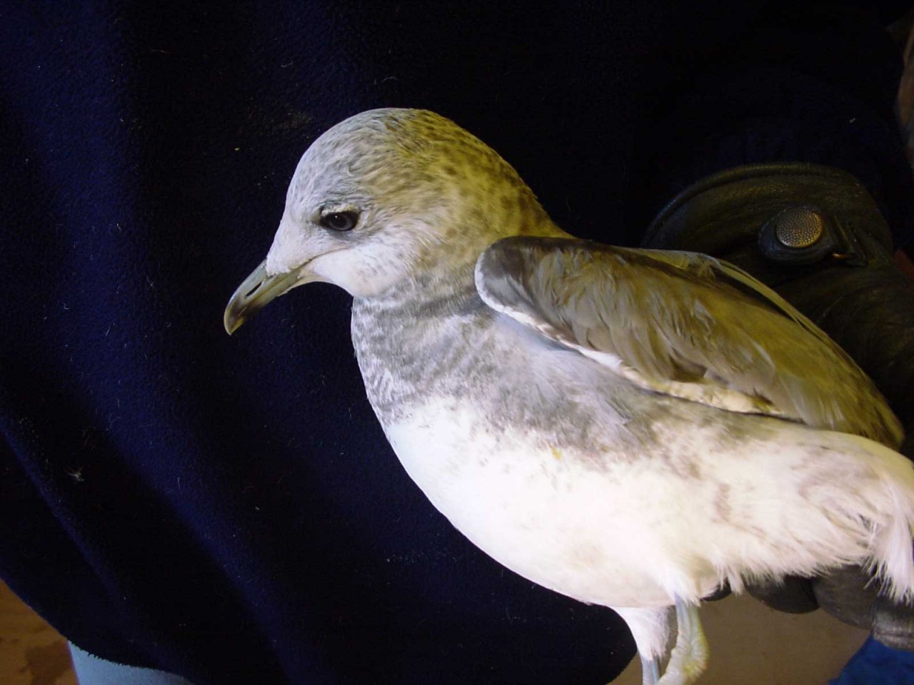 Beskrivelse: Stormmåge 2 W med markant sort halebræmme. Flere tegn på en afvigende L.c.canus eller måske en brachyrhynchus. Fuglen er ringmærket i Klitmøller, Thy den 21/2-2010 sammen med stormmåger. Målene er : Vinge 350 mm, næbhøjde over gonys 10,5 , tars 49, næblængde 33,3, kranie 87 mm. Klaus Malling Olsen har følgende kommentarer til fuglen: <i>"Dette er faktisk en ret spændende fugl! Det meget korte vingemål er mindre end nogen Stormmåge refereret i Gulls (alle baseret på skind), og falder indenfor variationen hos brachyrhynchos (bare "brac" længere fremme - det andet er for besværligt at skrive fuld ud hele tiden!) Brac har hyppigere end canus mørkt halebånd i denne alder, men det er ikke ukendt hos canus/heinei - se "Gulls"; i forhold til Grant fandt vi karakteren hos en større andel, hvilket grunder sig i, at det synes at være hyppigere hos heinei og andre former end hos vesteuropæiske canus. Det er dog ualmindeligt bredt for canus - se foto nr. 80 s. 91 i "Gulls!" for hvordan en brac kan se ud! Ligeledes er mørke tegninger på hånddækfjerene hyppigere hos brac end hos canus m.m., men dog ikke ukendt. Dette bortforklarer ikke yderligere afvigelser: 1: øjet ser lysere ud end jeg har set det hos tilsvarende alder af canus, men formentligt muligt. Langt hyppigere er det hos "brac", der jo bliver lysøjet som adult (hvilket godt nok er kendt, men betydeligt sjældnere hos canus og heinei. 2: hovedtegningerne er specielle: langt mere udvandede (ala den efterhånden velkendte "århushætte") end normlt hos canus, og kunne ligeledes antyde en "fjern" herkomst, se ill. 78 på s. 91 i "Gulls". Sammenlagt en meget spændende fugl med en del karakterer der kunne tyde på brac! Du er meget velkommen til at lægge fuglen på Netfugl med mine kommentarer. bedste hilsener Klaus"</i>