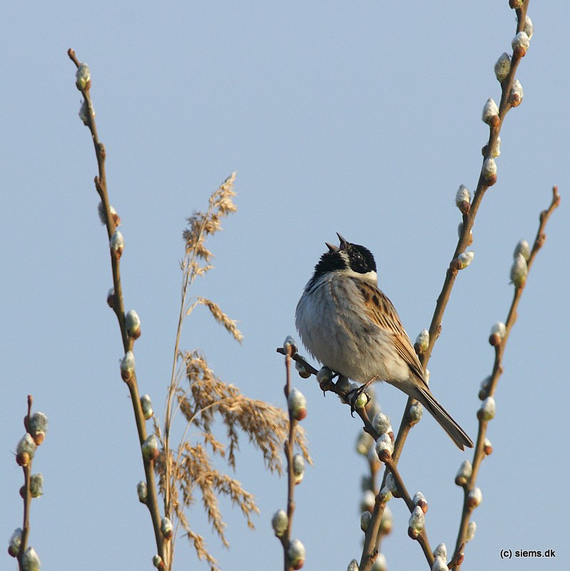 Beskrivelse: Der var flere rørspurvehanner klar på sangposterne her til morgen.