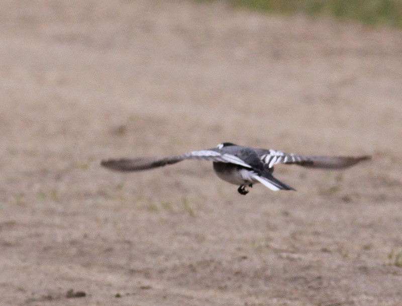 Beskrivelse: Den ret gråryggede yarrellii fra Hellebæk 6.4 2010 ses her i flugten, hvor ikke alene ovbergumpen, men også dele af bagryggen er sorte - alba ville her være grå, højst med mørkere overhaledækfjer.