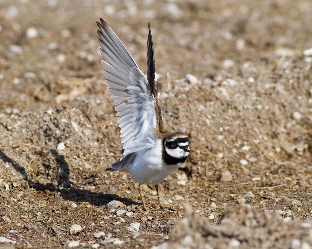 Beskrivelse: Når den lille præstekrave har været ude at fouragere i vådområderne flyver den hen til et tørt sted, hvor den pudser fjer, og er der en vandpyt, bader den. Når dette er overstået, slutter den gerne af med at strække vingerne. Herefter begynder en ny fødesøgning på det tørre område.