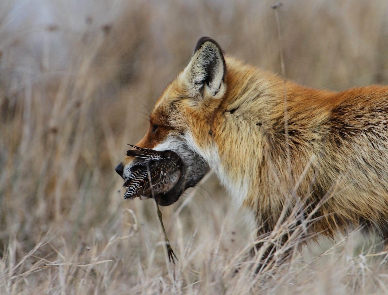 Beskrivelse: På ca. 80 m afstand så vi så en han-spurvehøg nærme sig, lavt, i høj fart. En håndfuld rødben og viber steg skrigende op over den, men sneppekliren forsøgte at undvige i en lav kurve som spurvehøgen imidlertid gjorde den efter, med ildevarslende nøjagtighed. Et øjeblik efter slog den kløerne i sneppekliren - vi kunne kun lige ane nogle få bevægelser inde i vegetationen. Efter få minutter steg høgen op med byttet hængende under sig, fløj med besvær et par meter i 2 meters højde og landede derpå igen - stadig var de to fugle næsten skjult af vegetationen, men i scop kunne man finde høgens gule øje derinde. Nu kunne vi dog iagttage, at den plukkede byttet; vi så dun og fjer flyve op fra stedet. Efter ca. 10 minutter kom en ræv luntende, fik tydeligvis færten af det friske blod og styrede målbevidst hen mod fuglene. Kort efter steg høgen op, ræven gik hen og begyndte at æde af byttet, gik nogle meter med det i flaben. Lagde det derpå fra sig, omhyggeligt virkede det som, og koncentrerede sig om et musehop der imidlertid ikke gav gevinst. Så tog den igen byttet og spadserede direkte hen imod os og videre ud i området...