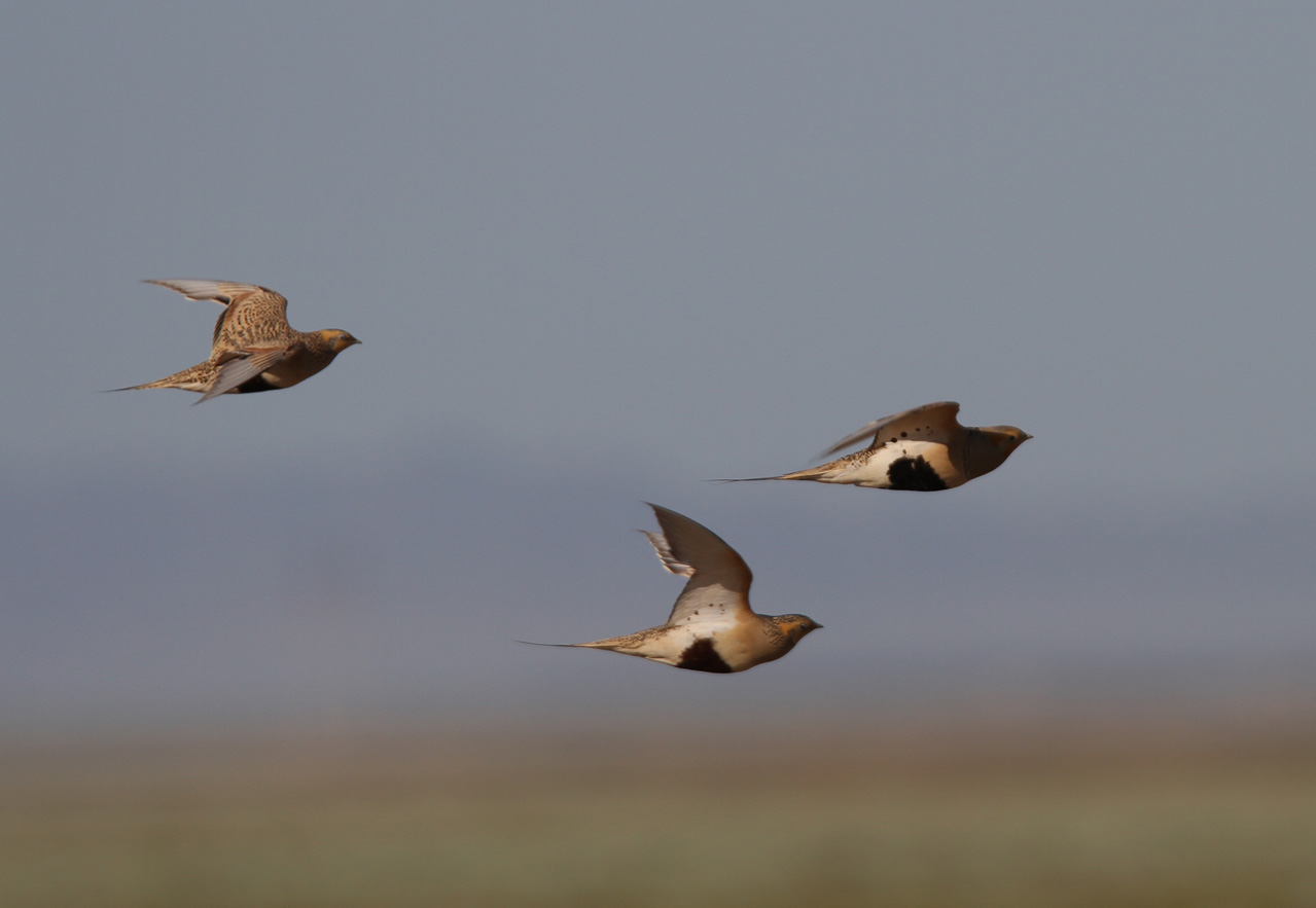 Beskrivelse: April’s observations and ideas of unusual high numbers of Pallas Sandgrouse outside normal range seem to be true. Last week’s re-visit to Konchengel in SE-Kazakhstan again provided excellent encounters. I think foreign birders will have great pleasures with this species this summer, and it really will be exciting to follow the influx in the coming year. As written at Aprils PS pictures, I’m quite sure that’s something is on its way… I have never seen such numbers of PS in Central Asia during more than 15 years birding in Kyrgyzstan and Kazakhstan. I have been told about high numbers of PS in autumn at certain places in Central Kazakhstan, but I have never witnessed so. Now there is influx of PS in SE-Kazakhstan, and I’m quite convinced it’s not a coincidence – something is unusual. Whether it’s the cold spring (we still have Humes Leaf Warblers in the lowland – they should weeks ago have been back on their breeding grounds in the mountains), lack of food or a good breeding season last year that provide these high numbers of PS this spring is not clear. Anyway – it’s a magnificent bird with its orange face, characteristic wide sounding flight calls, its pin-tail and very charming behavior. It seems shy when its seen in the distance and circles around - ually heard before seen. Its flight is extremely rapid and suddenly its close – and not that shy… often bumps down near the surprised birder. Sometimes they arrive quietly and surprise the birder with its presence… This is a bird I highly can recommend... for everyone interested in Central Asian birds – it’s a mythic and magnificent bird