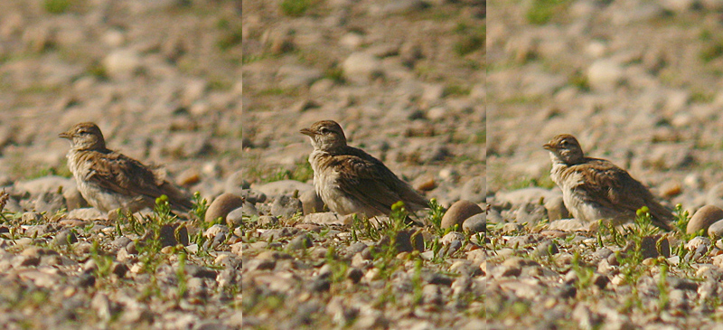 Beskrivelse: Så lille lærke med hele undersiden lys og uplettet (hals, bryst og bug) og en mindre men tydelig mørk hals-/brystsideplet. Så gik jeg direkte til at forsøge at få fotos og dernæst udmelde til DOFcall. Så forsvandt fuglen desværre og jeg fik ikke yderligere mulighed for at studere den. På billederne studser jeg lidt over at næbbet virker spinklere end jeg er vant til. Men det kan vel ikke være andet end Korttået Lærke ???