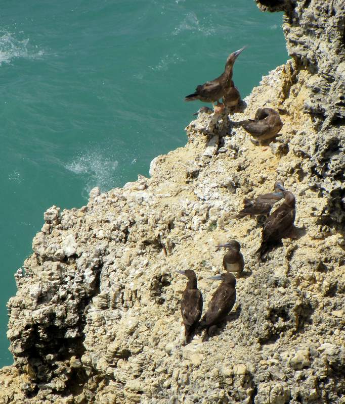 Beskrivelse: En mindre gruppe immature fugle hang ud på klipperne ved Cabo Rojo.