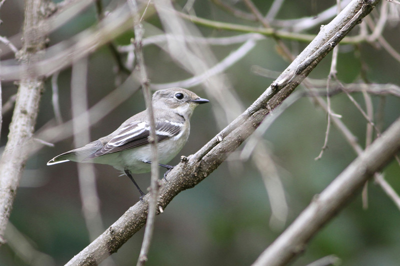 På billedet her dækker en gren desværre næsten fuglens lille hvide plet på håndsvingfjer (håndrodsplet/primary patch).