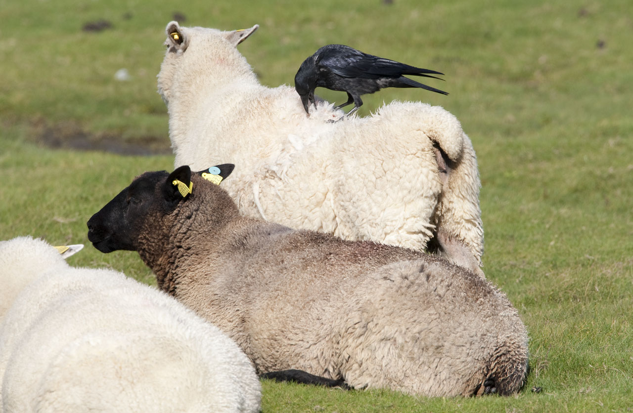 Beskrivelse: Denne sortkrage fra Mandø river uld ud af ryggen på fårene og spiser det meste af det, resten bliver gemt i et hul på marken. Er der nogen der har en "naturlig forklaring" på den adfærd??
