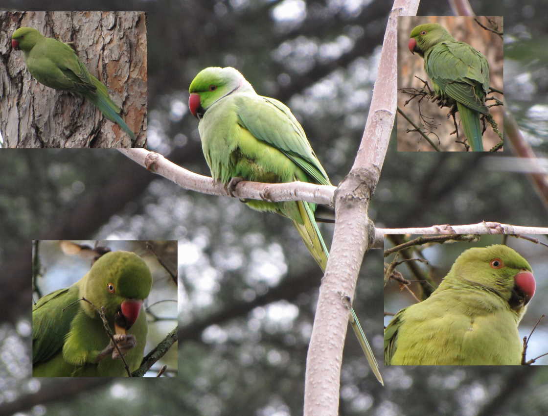 Beskrivelse: In almost every park of the city of Rome it is now possible to observe a few rose-ringed parakeets, especially where there are pine trees. They were reportedly introduced in Italy during the eighties. The other European city where I have also seen many of these birds, is Brussels in Belgium, where they seem even more numerous. They are usually quite vocal and therefore easy to find through their calls. They also often fly over building areas.