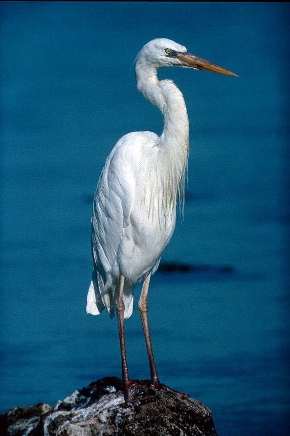 Bemærk de gullige ben og tykkere hals til forskel fra Sølvhejre.