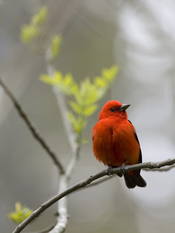 Er det ikke en Scarlet Tanager med det helt mørke næb og de sorte vinger?
