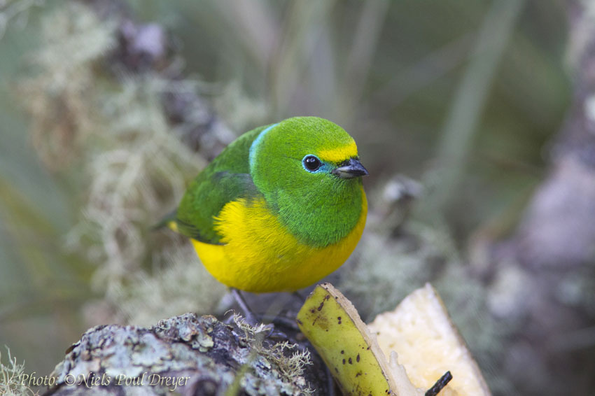 Beskrivelse: Chlorophonia ved feeder i 1900 meters højde ved EL Dorado i ProAves reservatet