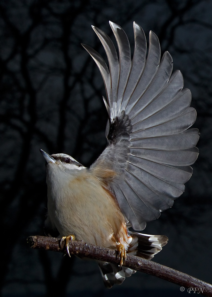 Lidt fascinerende hvor stort vingeareal sådan en lille fugl egentlig har. Her set i sit maksimum lige i begyndelsen af nedslaget.