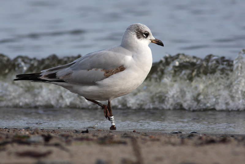 Beskrivelse: Mørk bag øjet - hvide tegninger over og under øjet kan ses også uden sort maske. Mørkt næb og mørke ben