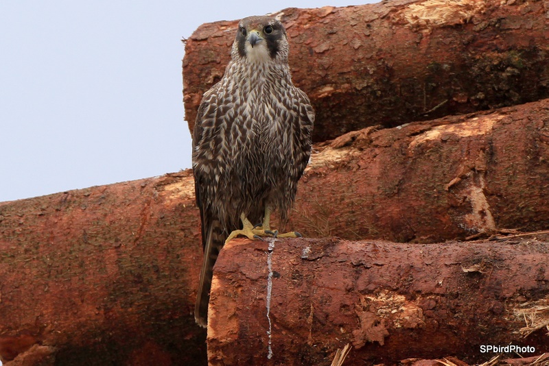 Beskrivelse: Præcis 2mdr. efter at Lars Halkjær tog de første fotos af denne vandrefalk, hun, 2K holdt den stadig til omkring "den blå kran". Set og fotograferet igen dagen efter dette foto. Stor kraftig fugl, som ser ud til at ha let ved at skaffe sig føde.