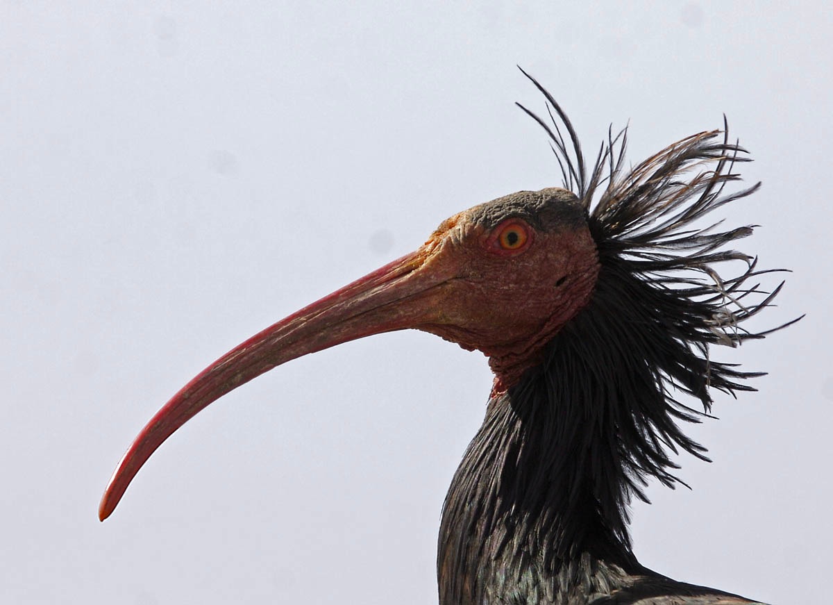 Beskrivelse: Hovedet af denne meget specielle og sjældne fugl. Findes kun på Atlanderhavskysten i Marokko og få eksemplarer i Syrien