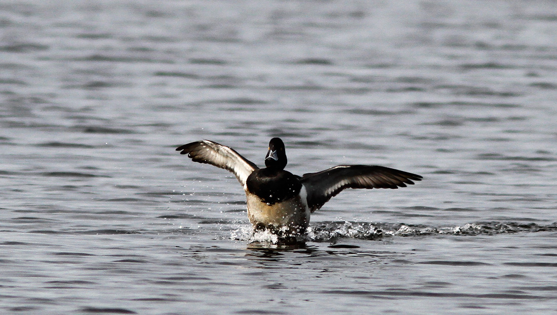 Undervingen er måske lovligt lys og gennemskinnelig, men jeg syntes at der er visse ting der peger på Halsbåndstroldand eller en hybrid med en sådan.