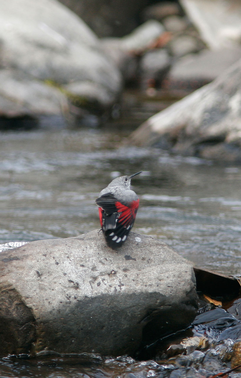 Beskrivelse: Jeg sad og fik mig en kop kakao ved en cafe lige ved elven som løber gennem Kullu i Nordindien. Der skulle tankes op ovenpå morgenens kølige men glimrende birding. Jeg hører min kone komme, og hun siger hun har taget fotos af to fugle, hun ikke før har set. Det tage jeg helt roligt, da elven havde vist sig helt fantastisk med fugle, bl.a. adskillige Brown Dippers, masser af Plumbeous og White-capped Water Redstarts, m.m. og regnede ikke med, der var noget nyt under solen. Men da hun viser slørede fotos af forktails, som jeg havde ledt efter, og endda en Murløber, fik det mig op af stolen. Begge lige udenfor caféen. Murløberen viste sig her at have hang til vandløbet, og kunne ses fouragere her længe. Dagen efter var den også på plads. Den tog nogle lange ture op og ned af vandløbet, men ikke ind i bjergene. Det var en overraskelse - den er jo notorisk svær at arbejde med!
