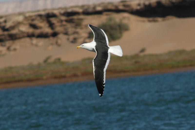 Beskrivelse: In order to see and identify Kelp Gull in Knifiss Lagoon you have to hire a boat to take you near the spot. We saw 2 birds which we identified as Kelp and several Great Black-backed Gulls.