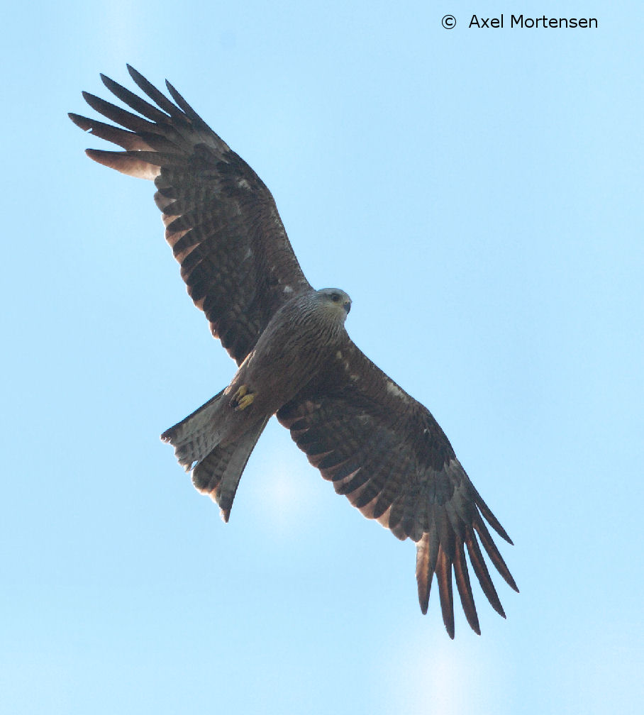 Beskrivelse: Jeg følte mig hensat til Skåne, da jeg så den sorte glente fouragerende med 2 røde glenter over en nyslået græsmark. En god oplevelse.