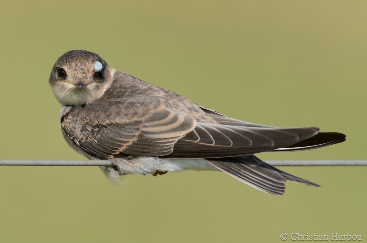 Beskrivelse: Det ser ud som om svalen her er angrebet af en flåt over øjet. Forhåbentlig falder den af igen. Jeg har ikke set fugle angrebet af flåter før. Det kan jo også være noget andet?
