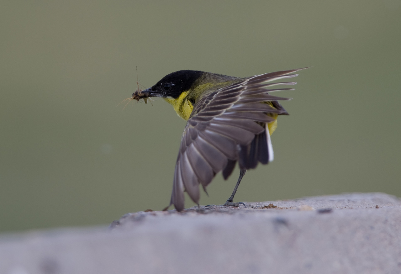 Beskrivelse: This Yellow Wagtail ssp feldegg of the form/type 'melanogrisea' is hereby first-confirmation as breeding form in Kyrgyzstan. I noticed one breeding pair hence the food in the bill of the adults, and confirmed it by observing how the adults flew to/from nest in a little bush.