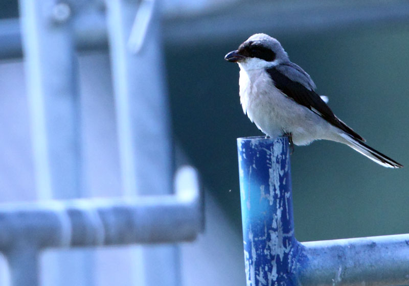 Beskrivelse: Man undres over hvad der tiltrækker fuglen til det pågældende sommerhusområde ved Skovmose, men der må vel være noget spidseligt mellem gyngestativer og stilads?