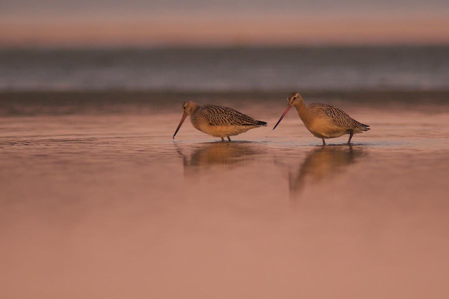 Beskrivelse: Roskilde fjord har virkelig mange vadere, dog er det jeg selv er mest tilfreds med her, lyset jeg fanger snepperne i. Det er overskyet men der er lige hul i skydækket der hvor solen kommer op i horisonten
