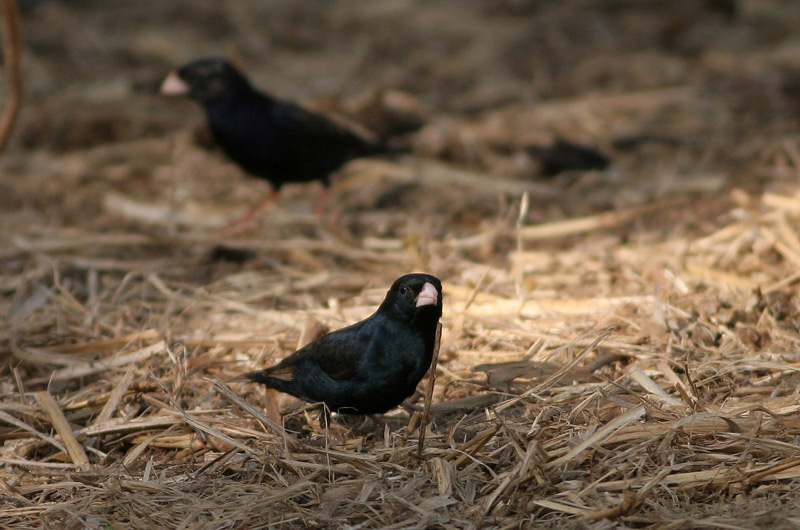 Brunt vingepanel og tydelig mattere mere pinkish benfarve var også anderledes end hannerne af Village Indigobird.