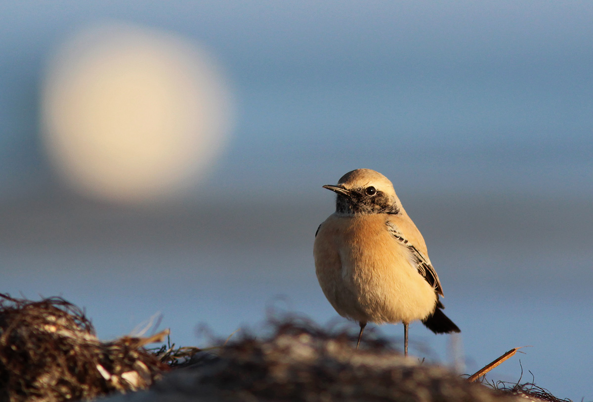 Beskrivelse: Ikke ofte man får chancen for at få et billede af Ørkenstenpikker med havet som baggrund.
