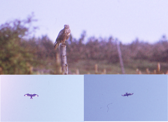 Beskrivelse: I forlængelse af debatten under <a href='http://www.netfugl.dk/pictures.php?id=showpicture&picture_id=43506'>dette foto</a> uploader jeg her nogle gamle fotos af en af SU-godkendt Steppevåge. Billederne er scannet fra nogle elendige dias. I mine noter står der bl.a.: Vingestilling næsten som Rørhøg, langhalet, hale og indre hånd gennemskinnelige, samme størrelse som Musvåge, men mere spinkelt bygget.