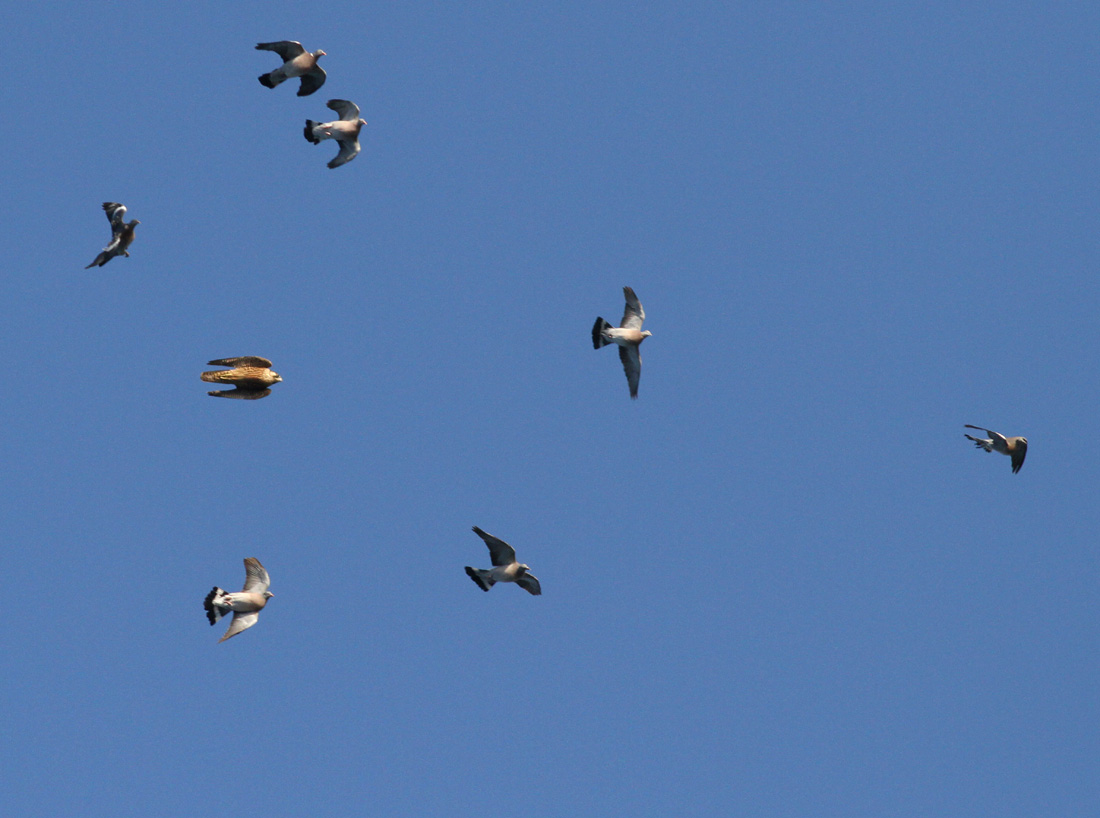 Titel: A juvenile Peregrine tries to target a Wood Pigeon