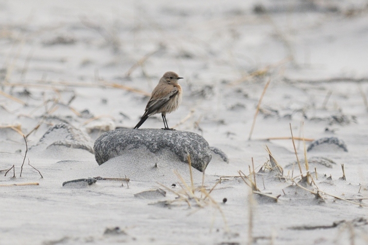 Beskrivelse: Fuglen er ret sky og flyver rastløst fra punkt til punkt i zonen, hvor stranden og klitterne mødes.
