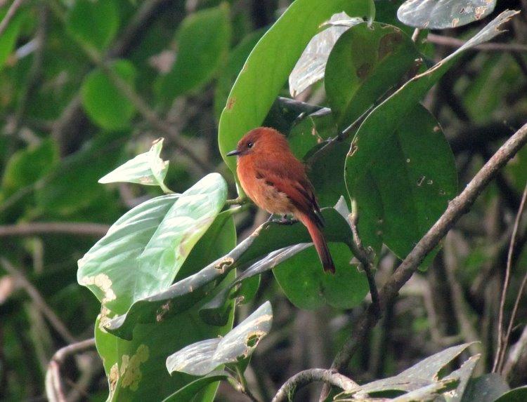 Beskrivelse: Den mest orange af alle racerne af Cinnamon Flycatcher, og med mulighed for at blive ophøjet til endnu en Santa Marta endem.