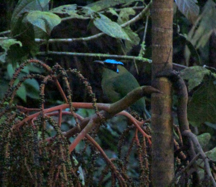 Beskrivelse: En fugl der virkelig føler sig hjemme i den allermørkeste underskov, gerne en skyggefuld, bevokset ravine. Selv i tusmørket er det glimmerblå øjenbryn nærmest selvlysende.
