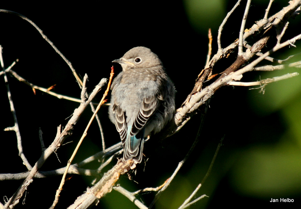 Jeg tror dog ikke at de hvide pletter på denne fugle, er kraftige nok til en Western Bluebird,men skal gerne indrømme at jeg ingen erfaring har med juvenil-dragterne, udover hvad Sibley har at byde på.