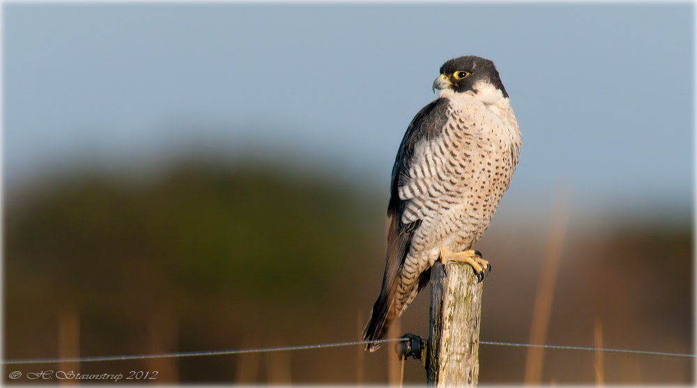 "Ja, der har lige siddet en smuk, smuk Vandrefalk ude på pælen, men den fløj, da I kom ..."