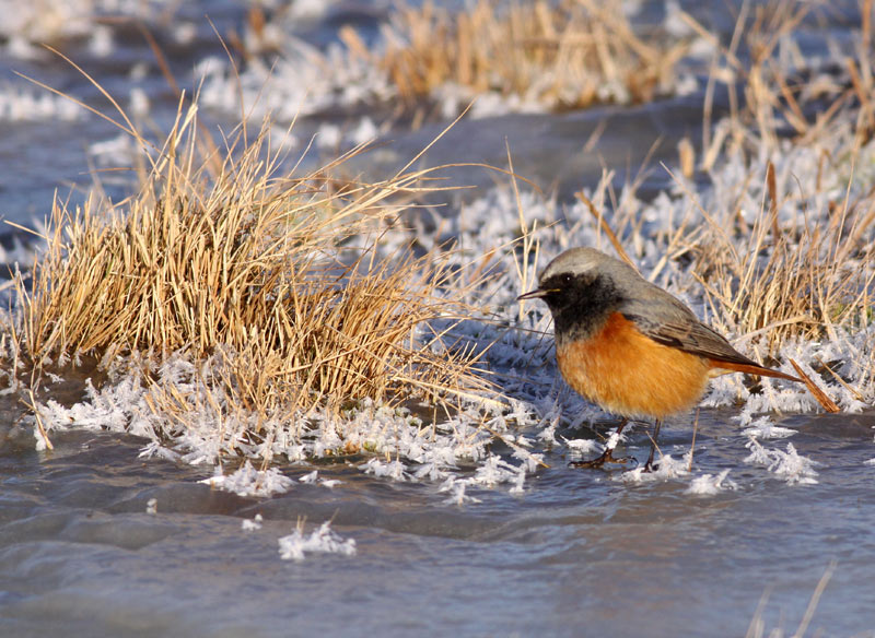 Beskrivelse: Den langtidsstationære "Husrødstjert" i Skåne ved Rålehamn. Den findes ved at køre mod Torekov. Man drejer fra ad Råledsvägen nogle km.nordøst for byen, passerer siden en golfbane og kan parkere ved et enligtstående hus med smuk udsigt over enebevoksede bakker. Herfra går man mod havet. I et strandområde mellem to betonbunkere er fuglen mest set, men idag søgte den føde mellem adskillige rødhalse på et tilfrosset lavvandet parti ca. 30 meget bag strandlinien.