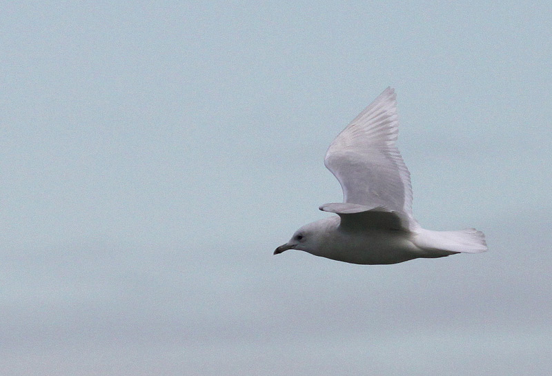 i felten er denne fugl svær at bestemme, men i optimalt lys sås i felten en meget svag grå vingeforkant samt smal grålig halespids. At øjnene desuden var mørke antyder oprindelsessted vest for Grønland.