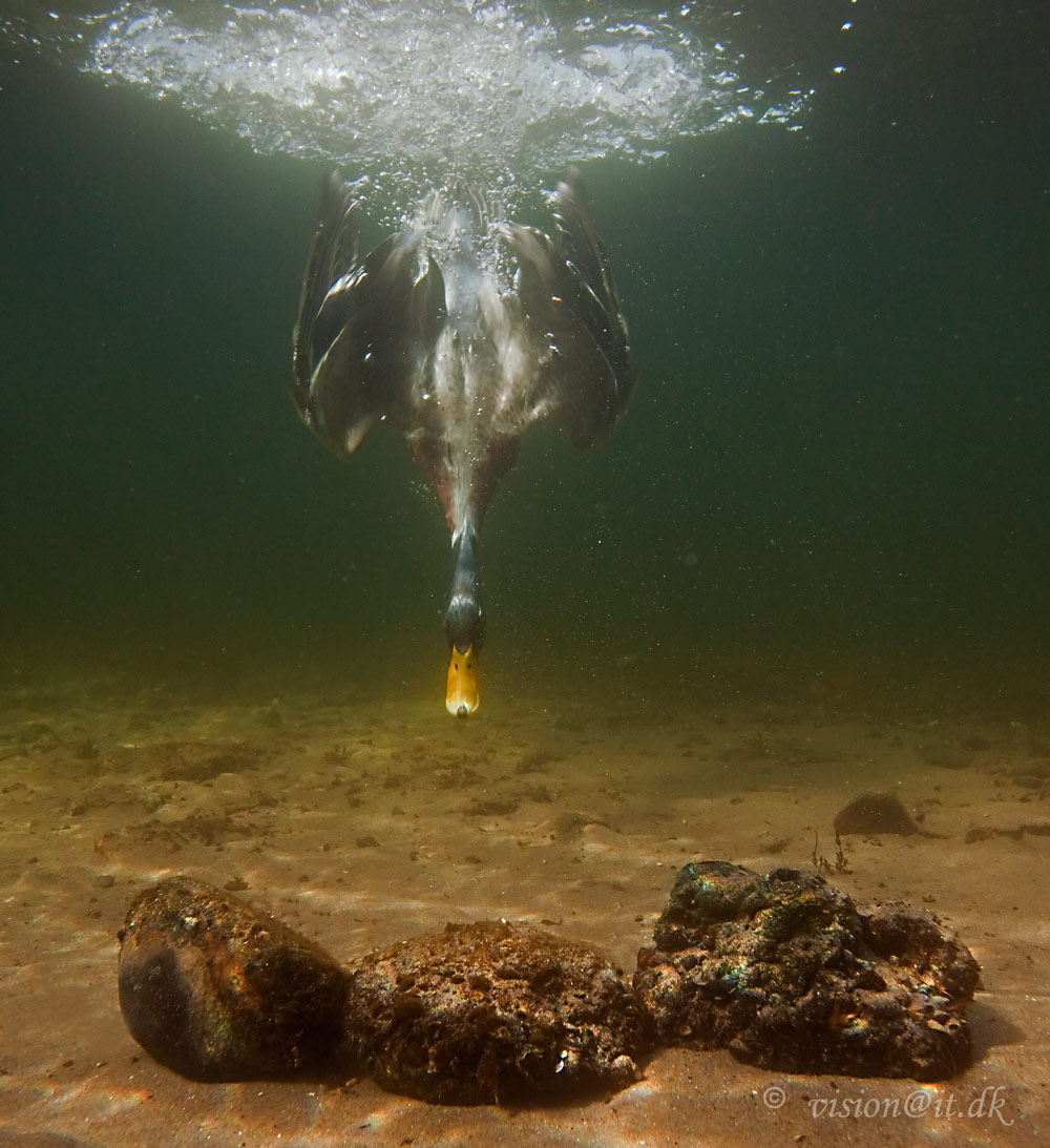 Den kan ikke vende sine svømmefødder som dykænderne for på den måde at skabe "downforce", men må bruge sine vinger for at modvirke opdriften.