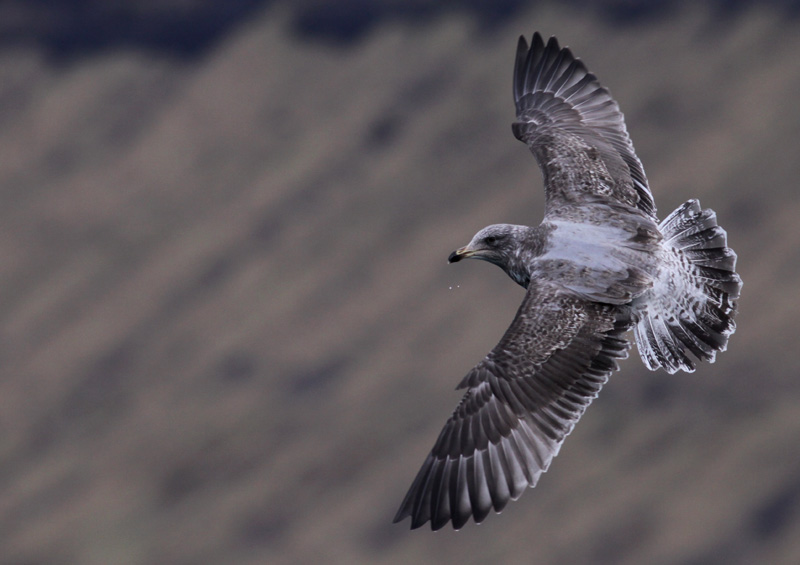 But the tail-pattern, with much white in outer edges og outer rectrices is (probably) more in line with Herring Gull, as is the rather narrow dark barring in rump (also present in underparts).