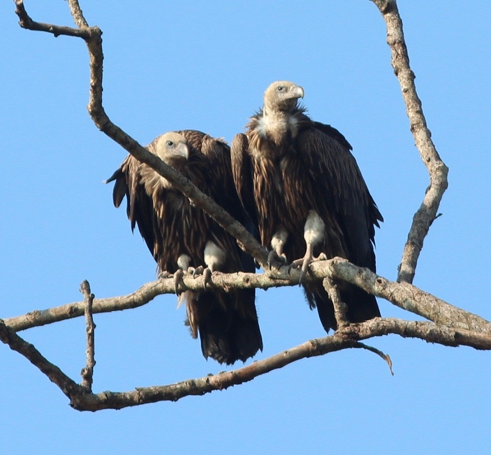 Inden netfugl lukker ned, bør navnet på disse to basser rettes til Himalayagrib. Dragten er helt typisk for helt unge fugle af denne art. Den lyse stribning på ryggen (venstre fugl) og på scapularene (højre fugl) udelukker helt Bengalgrib. Bengalgrib har desuden aldrig så kraftig lys stribning på undersiden. Fødderne/benene på disse 2 har også den rigtige farve for Himalayagrib, hvor fødder/ben på Bengalgrib er næsten sort i alle aldre. Man skal ikke lade sig snyde af de hvide fjerbelkædt lår som stikker ud af de veludviklede bukser, som man bare ikke fornemmer her. Halelængden passer samtidig også perfekt på Himalayagrib.