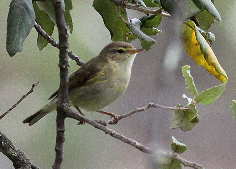 Bemærk lysegult øjenbryn, udbredte gule indslag på bryst og bug samt mellembrune ben. Alt i alt en mellemting mellem Gran- og Løvsanger.