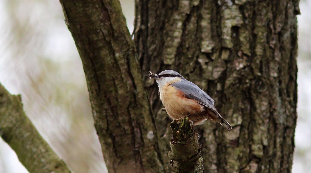 Det ser ud til at den har næbet fuld af vingede insekter.