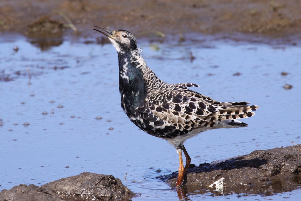 Beskrivelse: Jeg har kun hørt brushanens stemme nogle få gange, når jeg har været helt tæt på. Det er et ganske svagt "Rep-rep" eller noget i den retning.