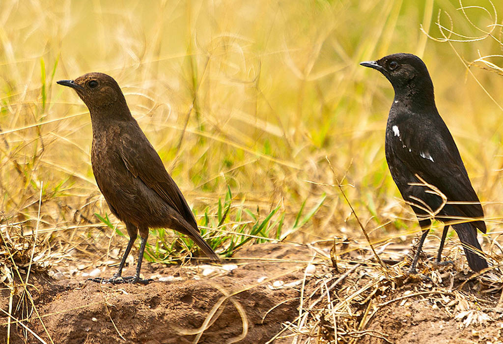Beskrivelse: Sooty Chat par. Jeg kender ikke det danske navn !
